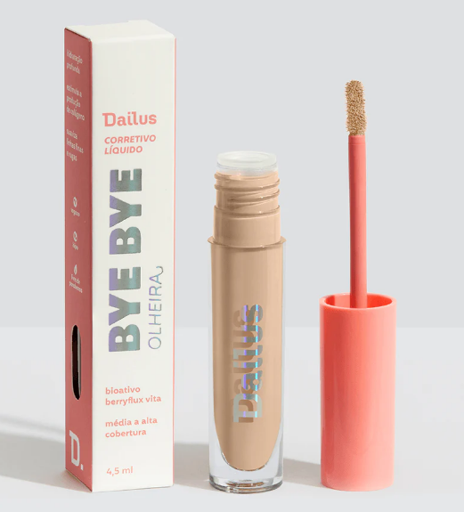 O Corretivo Líquido Bye Bye Olheira da DAILUS chegou com tudo! Com média a alta cobertura e acabamento acetinado, é ideal pra disfarçar olheiras, corrigir imperfeições e uniformizar o tom da pele.